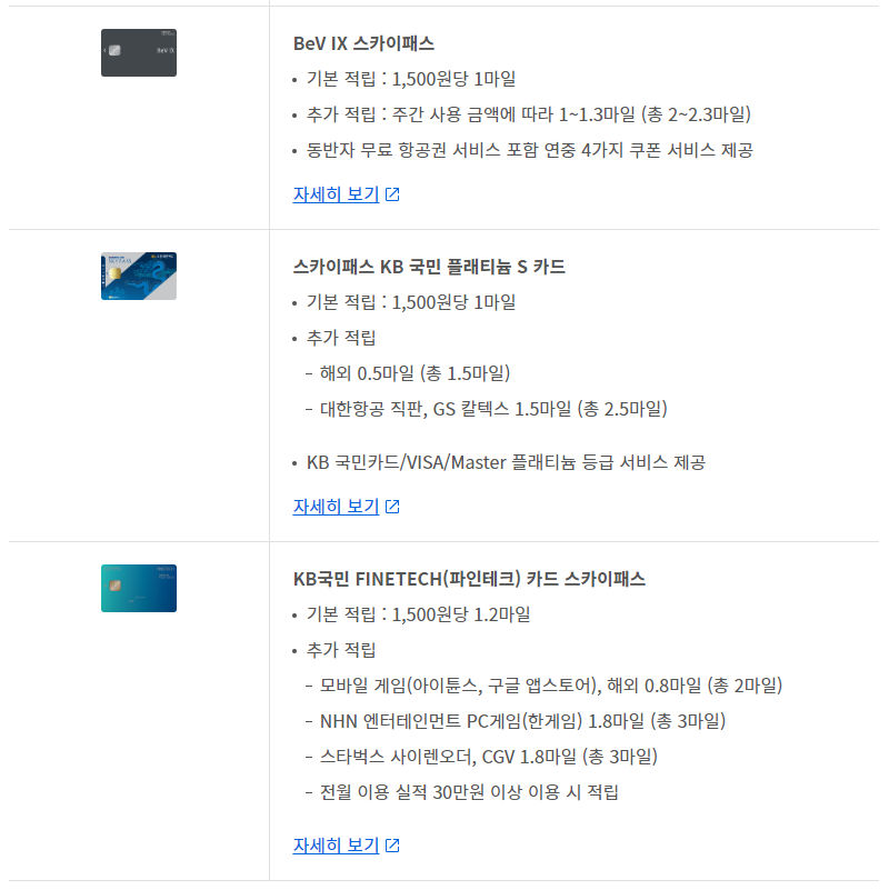 국내에서 사용가능한 대한항공 스카이패스 제휴 신용카드에 대하여 안내해 드립니다.