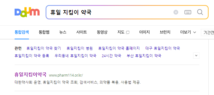 ◆ 포털사이트에서 "휴일지킴이 약국"을 검색합니다.