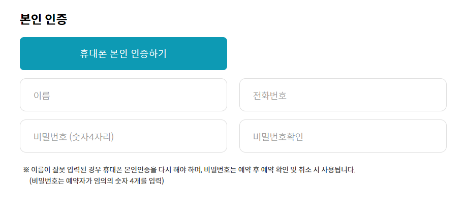 마지막으로 예약 인원을 체크 하고 본인 인증으로 넘어갑니다.