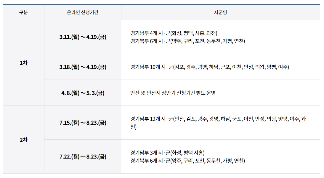 * 2차 신청은 1차 신청기간 중 미신청자 및 전입으로 인한 신규 신청자에 한함