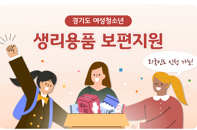 경기도에서 여성청소년들 (11세 ~ 18세) 에게 생리용품 (생리대)을 지원하는 사업이 곧 시작됩니다.